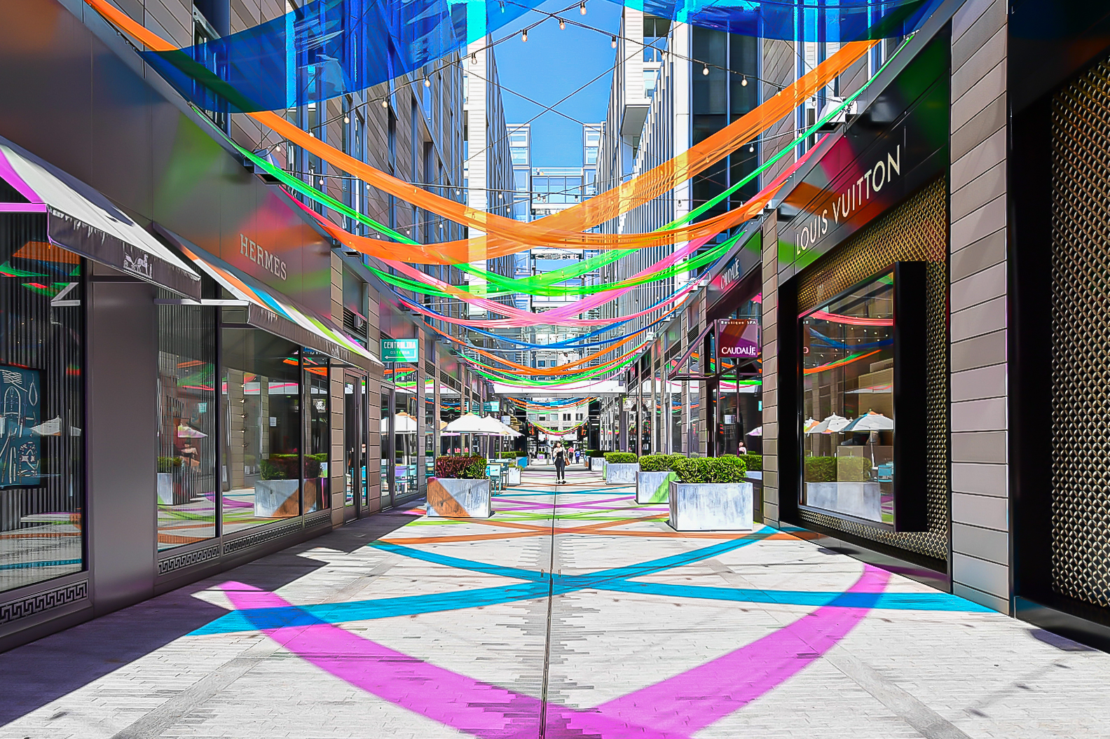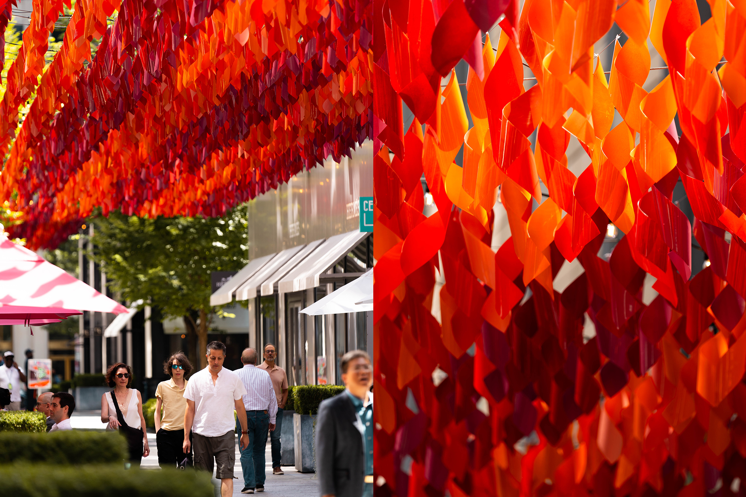 At the heart of CityCenterDC sits Palmer Alley, a premier outdoor space, attracting more than 1.5 million visitors annually. Known for its seasonal, overhead installations, artists have used it to introduce color, pattern, and light overhead, reshaping how the alley feels as people move through it.